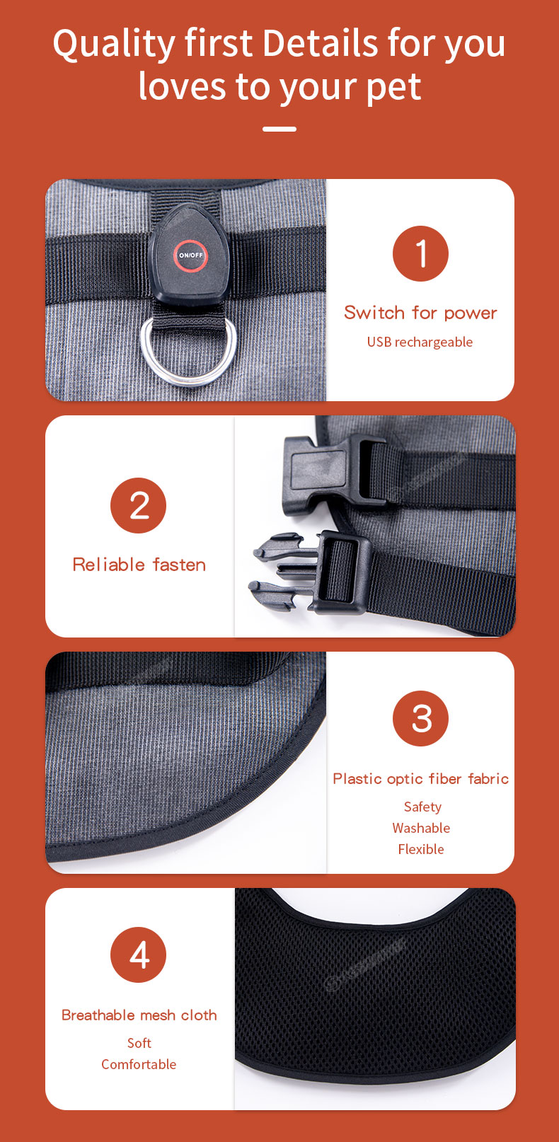 | Package | Pet Vest*1pc, USB charging cable*1pc |